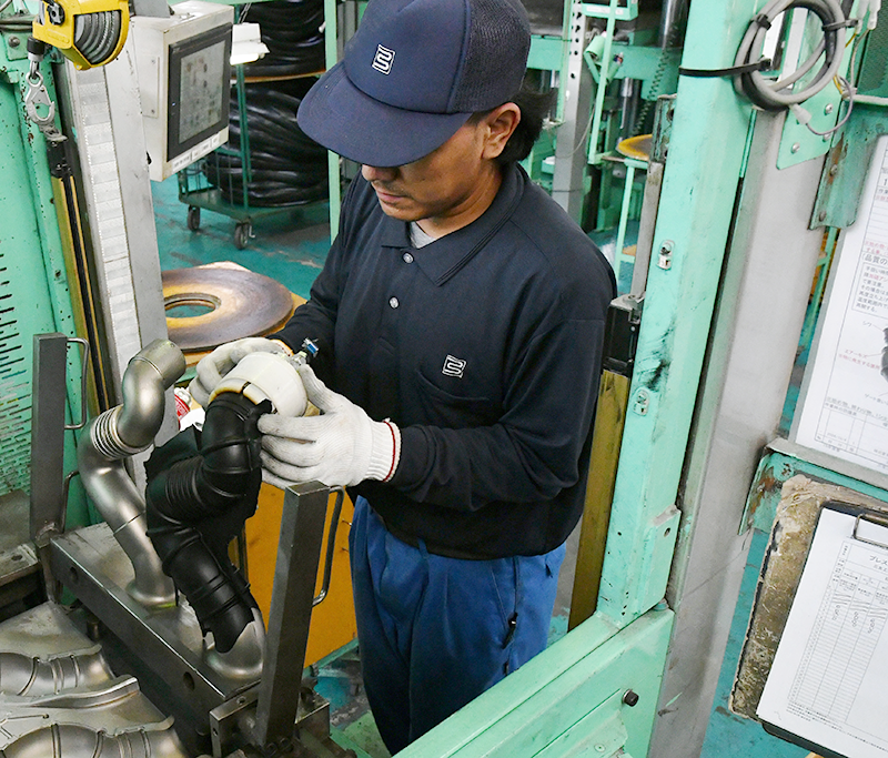 チームワークで効率よく生産を回しています。製造のスキルを身に着けることができ自動車産業に強権するやりがいのある仕事です。