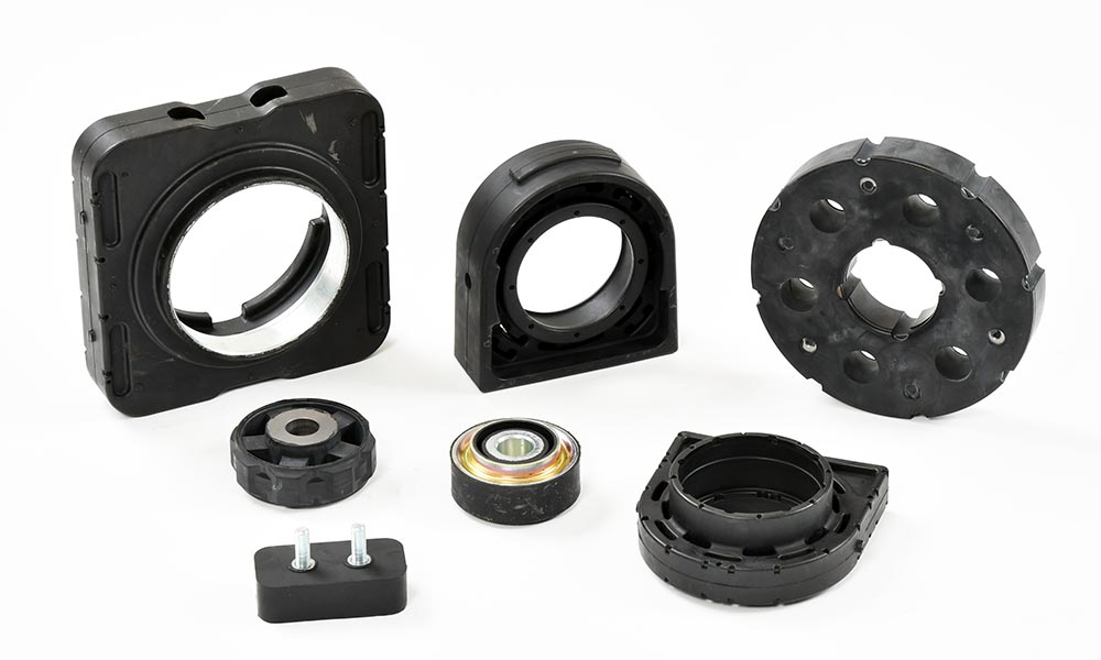 車体やエンジンの振動・騒音を制御する防振製品。複雑な形状・条件に応じた柔軟なカスタム設計が可能です。
